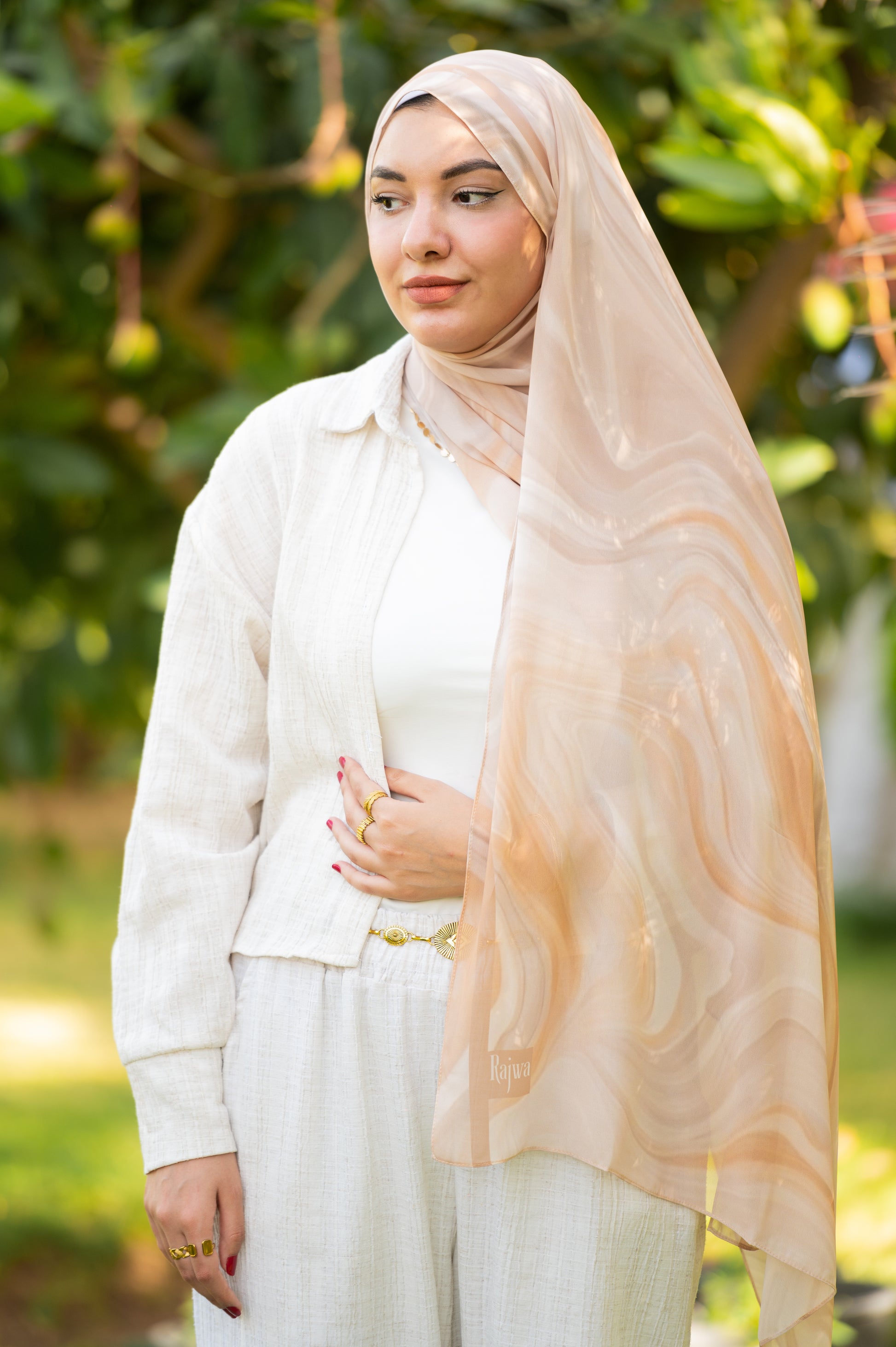Inspired by the serene waves of desert sands. This elegant design features soft beige, cream, and golden hues flowing together like natural marble. The smooth texture and graceful pattern offer a touch of warmth, sophistication, and timeless beauty to your look.